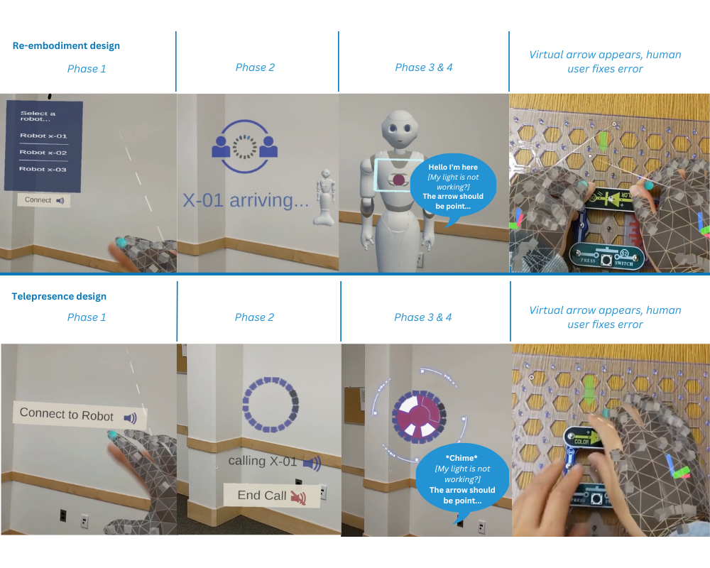 Robots deployed into real-world task-based environments may need to provide assistance, troubleshooting, and on-the-fly instruction for human users. While previous work has considered how robots can provide this assistance while co-located with human teammates, it is unclear how robots